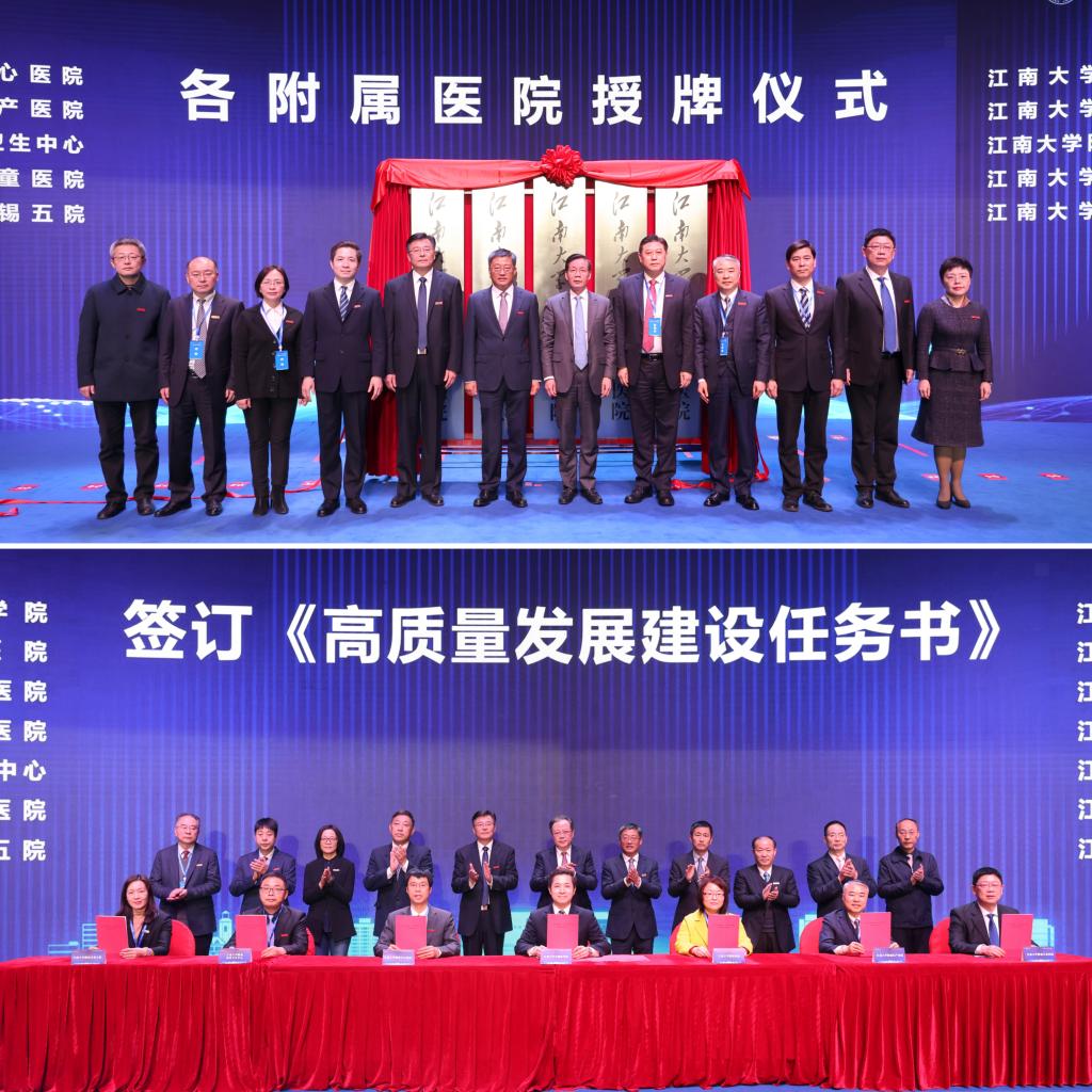 会议伊始,陈卫校长、陈国强院士、符惠明副书记等共同为各附属医院授牌。而后,马鑫副校长和各附属医院领导签订《高质量发展建设任务书》,全体校领导见签。任务书的签订既是目标和责任的共担,更是信念和使命的传递,对全面提高无锡地区医疗卫生事业和脱裤吧