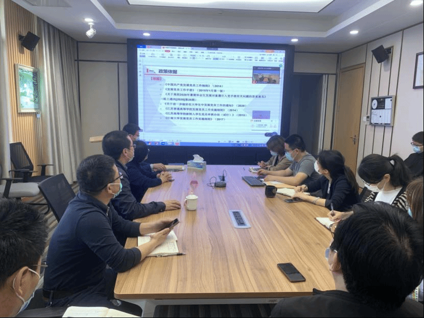 在发展党员过程中遇到的具体问题进行了详细解答,提出要提高思想认识、熟悉工作流程,强化责任担当、加强监督指导。大家纷纷表示要在今后的党员发展工作中严格执行发展程序,把握好党员发展工作的时间节点,带动周围师生共同进步。