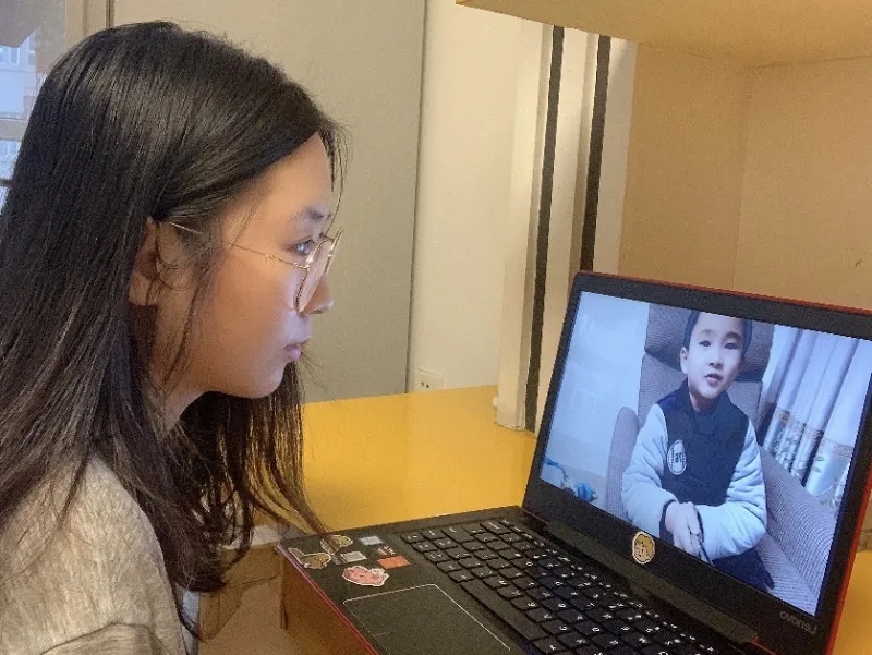 图1 志愿者徐冬妍与小朋友视频对话