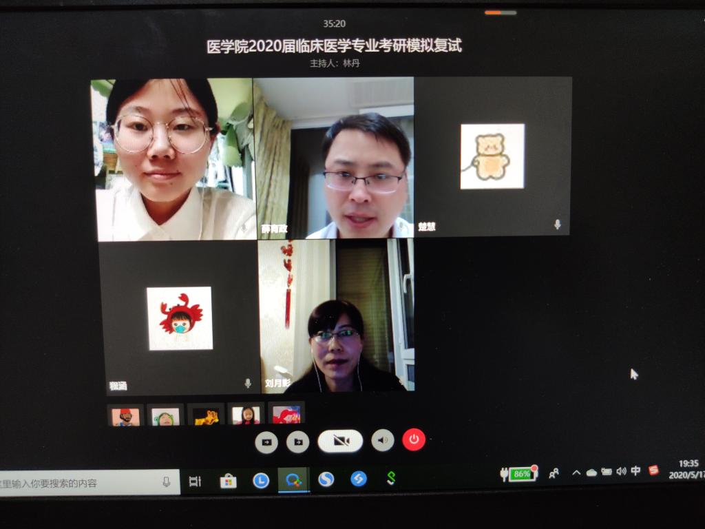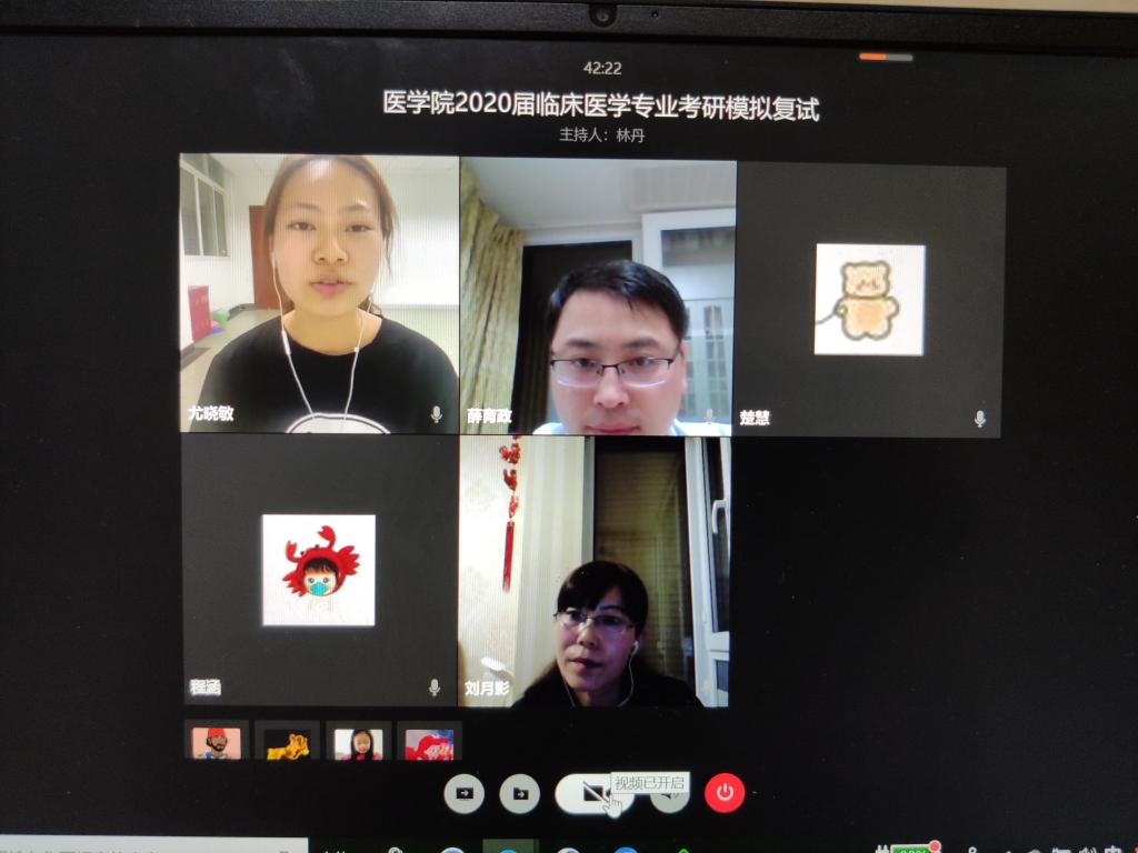 于5月17日晚7时通过企业微信网络视频的方式,开展了考研线上模拟复试。附属医院儿科主任医师、副教授、质量管理处副处长刘月影,消化内科主任、主任医师薛育政以及学院临床1501班主任周跃涛三位老师应邀担任面试评审,脱裤吧