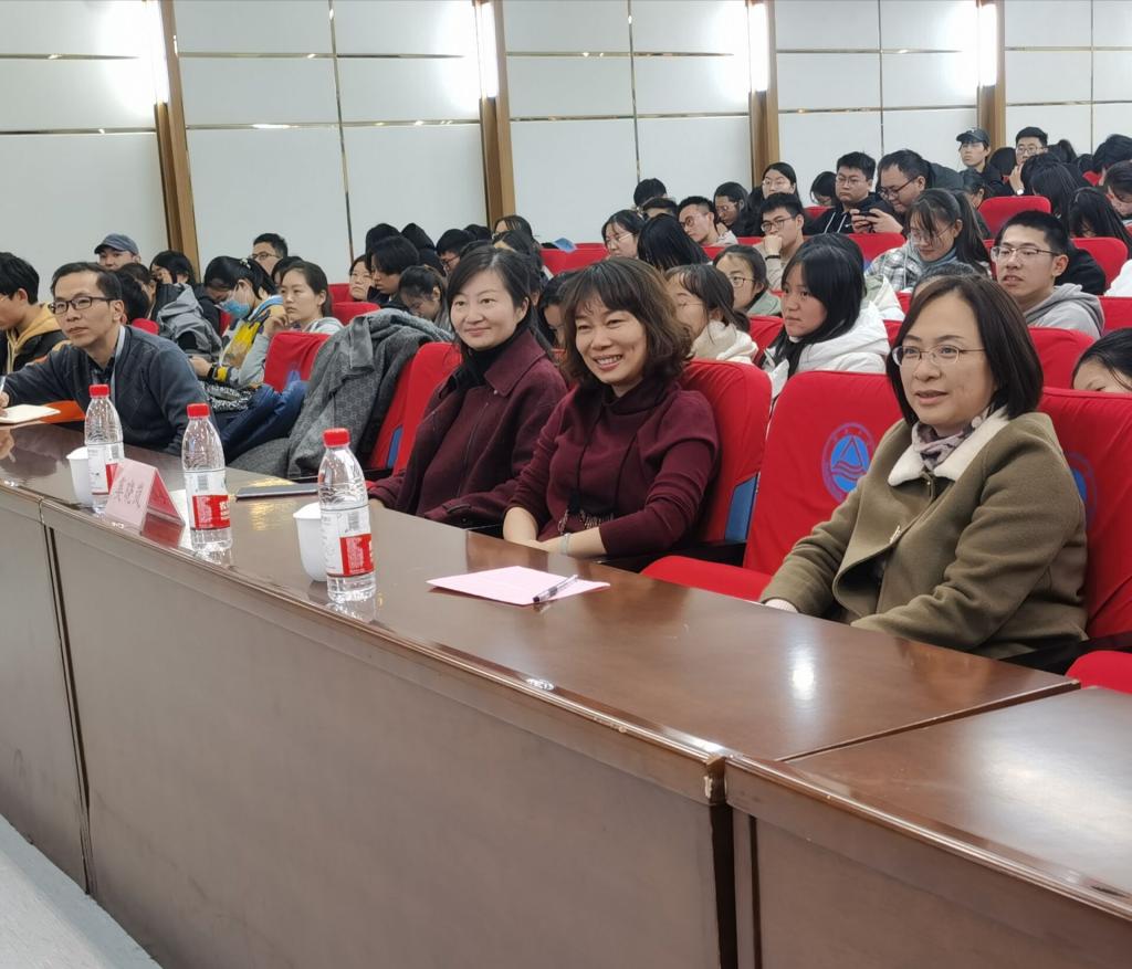 党委书记向琪,院党委副书记、副院长奚晓岚,院长助理、公共卫生与预防医学系主任程洋、院教师发展中心主任吴郁、院全体辅导员和近400名本科生到场听课。