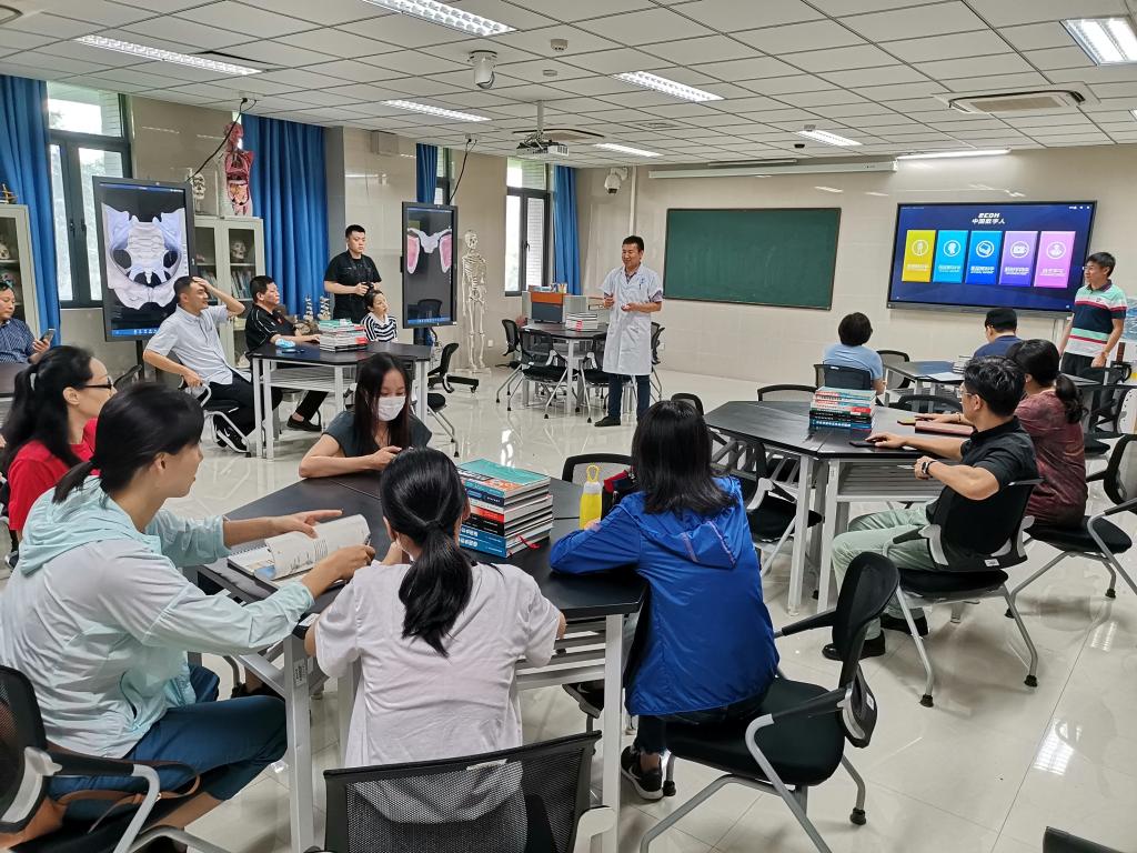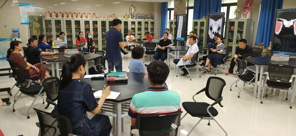 D栋大楼人体解剖学实验室开展了热烈讨论:首先每位老师结合各自的专业特长进行自我介绍,然后就《体育健康学》《运动解剖学》等学科交叉课程的教学内容设计、教学方法、教学特色进行了广泛讨论,为课程教学大纲的制订和课程建设提供了框架方案。