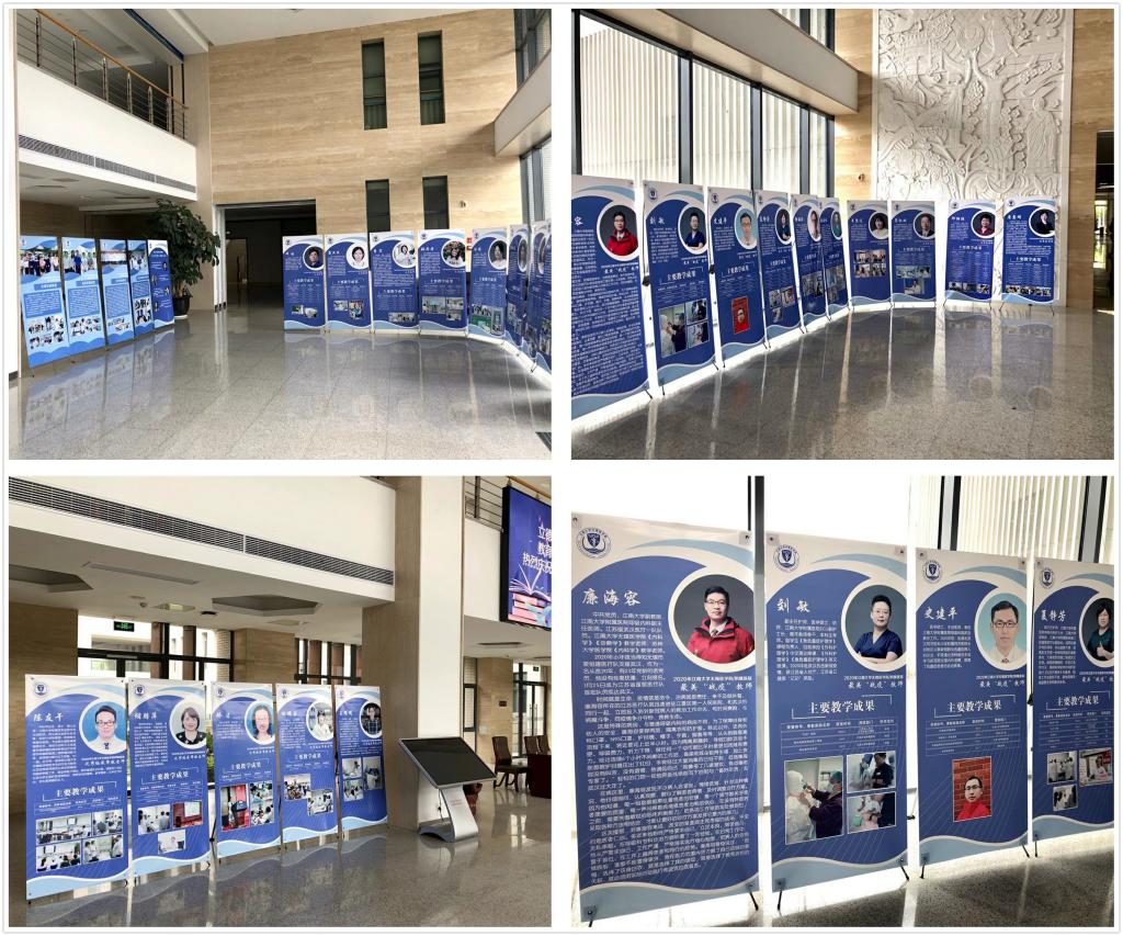 学院大厅内举办了获奖教师和获奖教学集体优秀教学事迹展,生动展示当代教师阳光美丽、爱岗敬业、无私奉献的良好形象,以及立德树人、奋勇抗疫、潜心育人的精神风采。