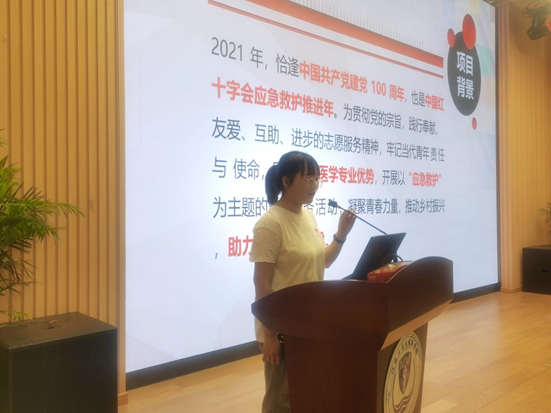 “青春救助行,博爱护生命”博爱青春志愿服务团队参与此次答辩,博爱青春团队致力于为青少年及其他易损人群宣传应急救助知识、为形成“人人学急救、急救为人人”的良好社会风尚做出自己的贡献,力争在暑期的志愿活动中服务更多的人、帮助更多的人,以此来表达他们对中国共产党百年华诞的庆贺。
