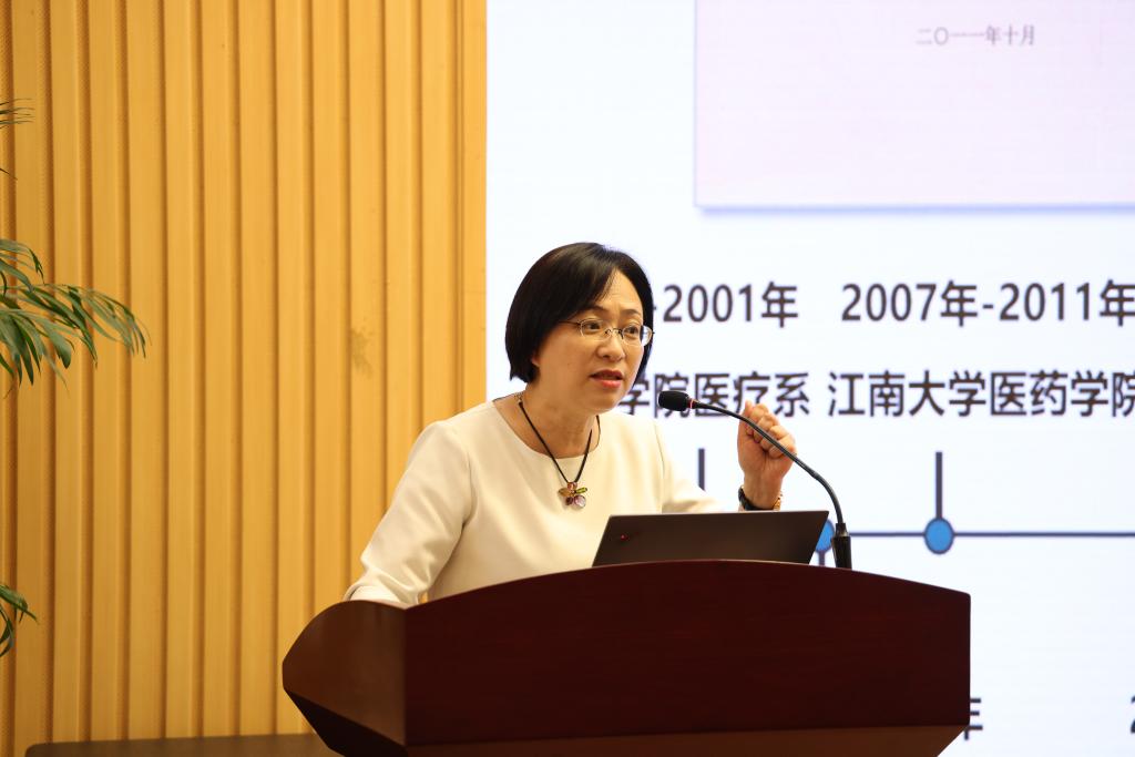 向琪书记致辞。她表达了对老师和校友们的热烈欢迎,并代表马鑫院长对所有的老教师们致以诚挚的敬意,感谢他们在学院成立之初为学院医疗系建设做出的卓越贡献。向书记还向大家详细汇报了脱裤吧