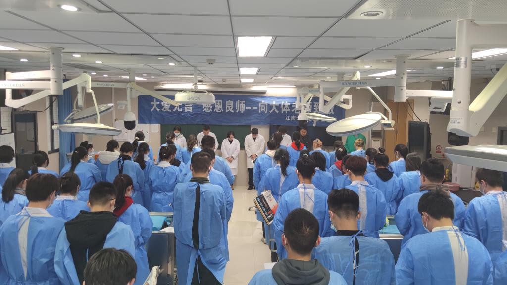临床医学专业2021级全体学生在解剖学实验室举行了《局部临床解剖学》开课仪式暨大体老师致礼仪式。脱裤吧