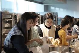 随后,在烘焙老师的指导下,大家认真揣摩,互相交流讨论,分工合作,有搅拌黄油的,有打发鸡蛋的,有搓面团的,有做造型的。在相互帮助下,大家充分发挥了自己的想象力和创造力,体会着制作曲奇带来的快乐,很快一个个精美的小曲奇诞生了,大家兴奋地展示着自己的劳动成果。