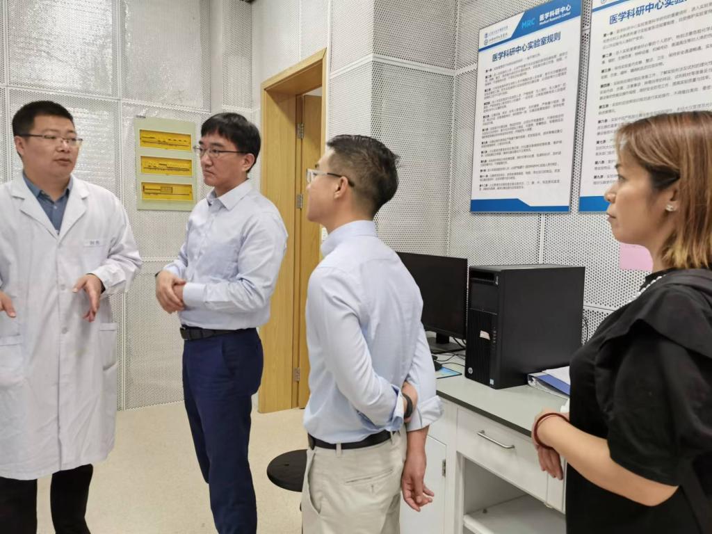 附属医院烧伤整形科进行参观。中华医学会烧伤外科分会主委、国家重点专学科烧伤科学科带头人吕国忠教授介绍了教育部创面修复技术工程研究中心的基本情况,并就创面修复临床研究、修复材料的科研开发等进行交流和探讨。