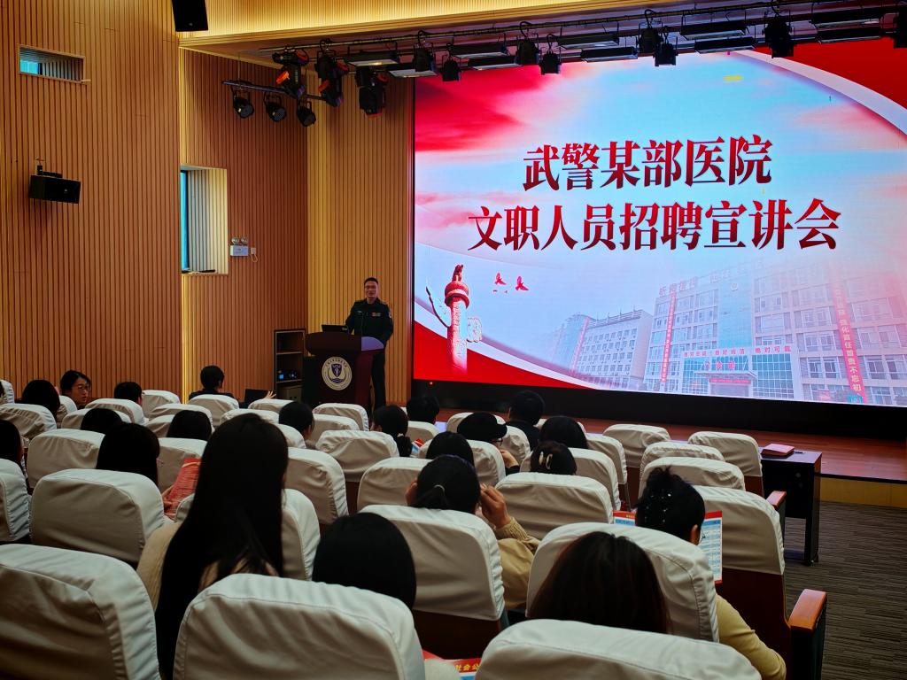 为充分拓宽毕业生就业渠道,搭建毕业生和用人单位交流平台,11月11日下午武警某部医院军队文职专场招聘宣讲会在脱裤吧
