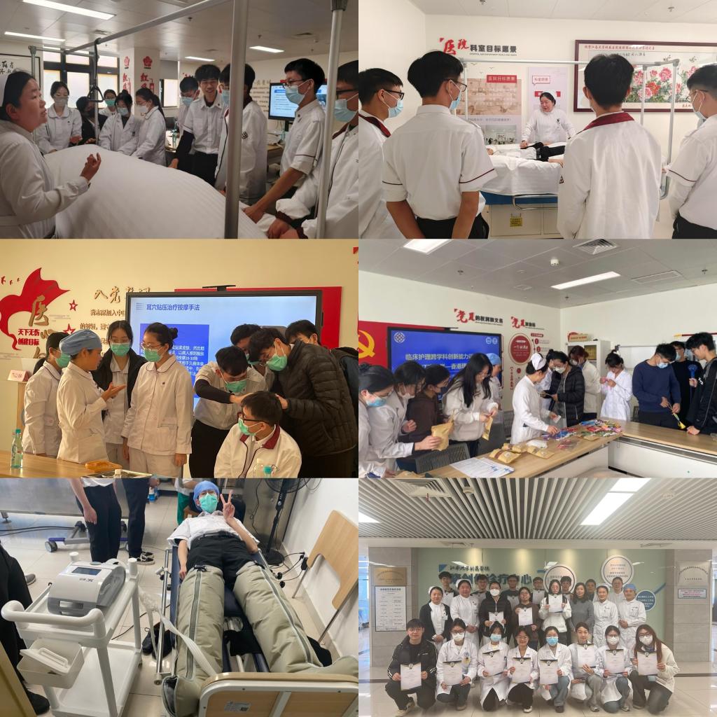 附属医院烧伤科参观学习了富有特色的专科设施和技术,进入病房进行床边学习伤口护理、康复护理、心理护理等,亲身体验翻身床、悬浮床、红外线灯等烧伤科特有器械,感受如何为烧伤患者减轻痛苦、促进愈合,进而了解我院在临床护理跨学科创新实践方面的特色和优势,促进了两校在护理文化上的交流与沟通。此外,中医护理技术的学习及中医香囊的制作进一步加深了学生对中医文化的了解,领悟了中医传统文化的智慧和魅力。