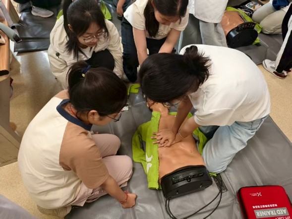实践期间,同学们分组进入心内科、普外科、耳鼻咽喉头颈外科、眼科等多个临床科室,观摩诊疗流程,学习基础医疗操作。在骨科实验室、组织工程实验室等科研平台,师生们近距离接触3D打印技术、生物材料研发等前沿医学研究,深入了解科技创新在临床医学中的应用。此外,医院还安排了心肺复苏(CPR)和自动体外除颤仪(AED)使用培训,提升学生急救技能。
