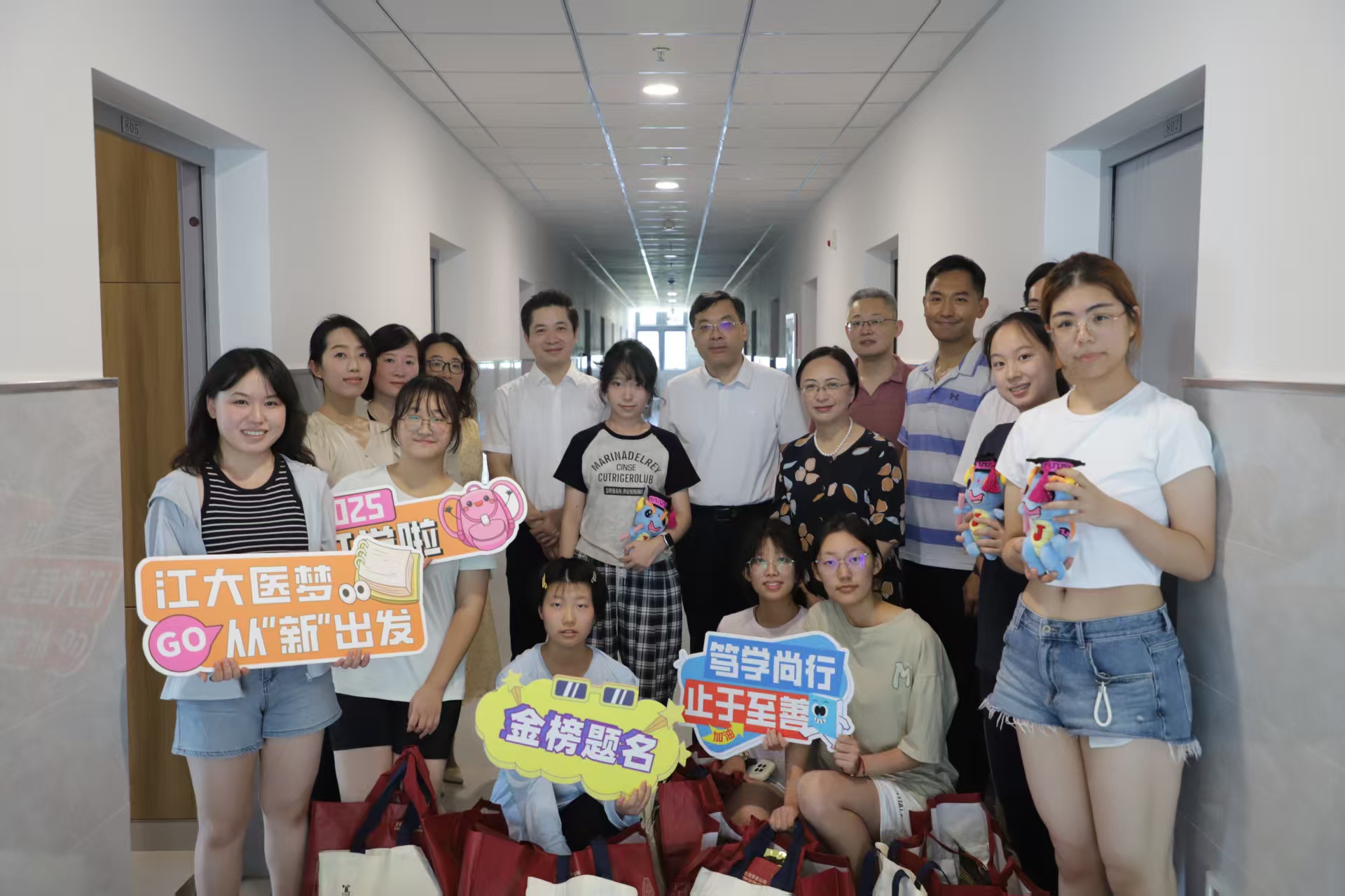 党委书记向琪、执行院长孙宁及学院领导老师一同走进学生宿舍,为新生送上“新生大礼包”,并与他们亲切交谈,深入传递市校共建、协同育人的理念,彰显对医学人才培养的高度重视与殷切期望。笪学荣书记强调:“无锡市卫健委将与脱裤吧
