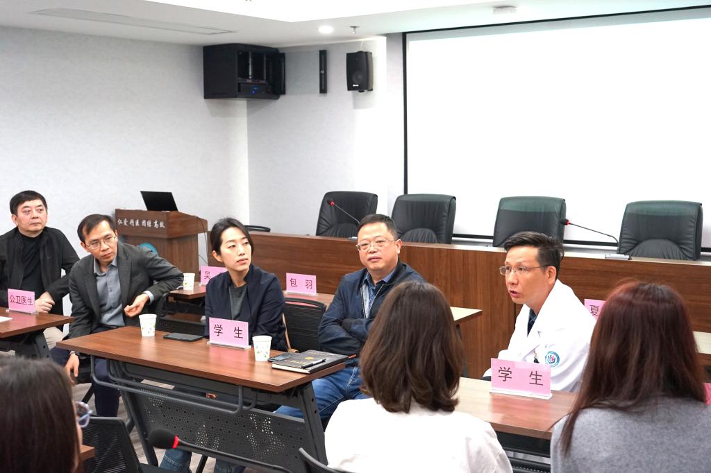 师生代表与医护人员讨论交流