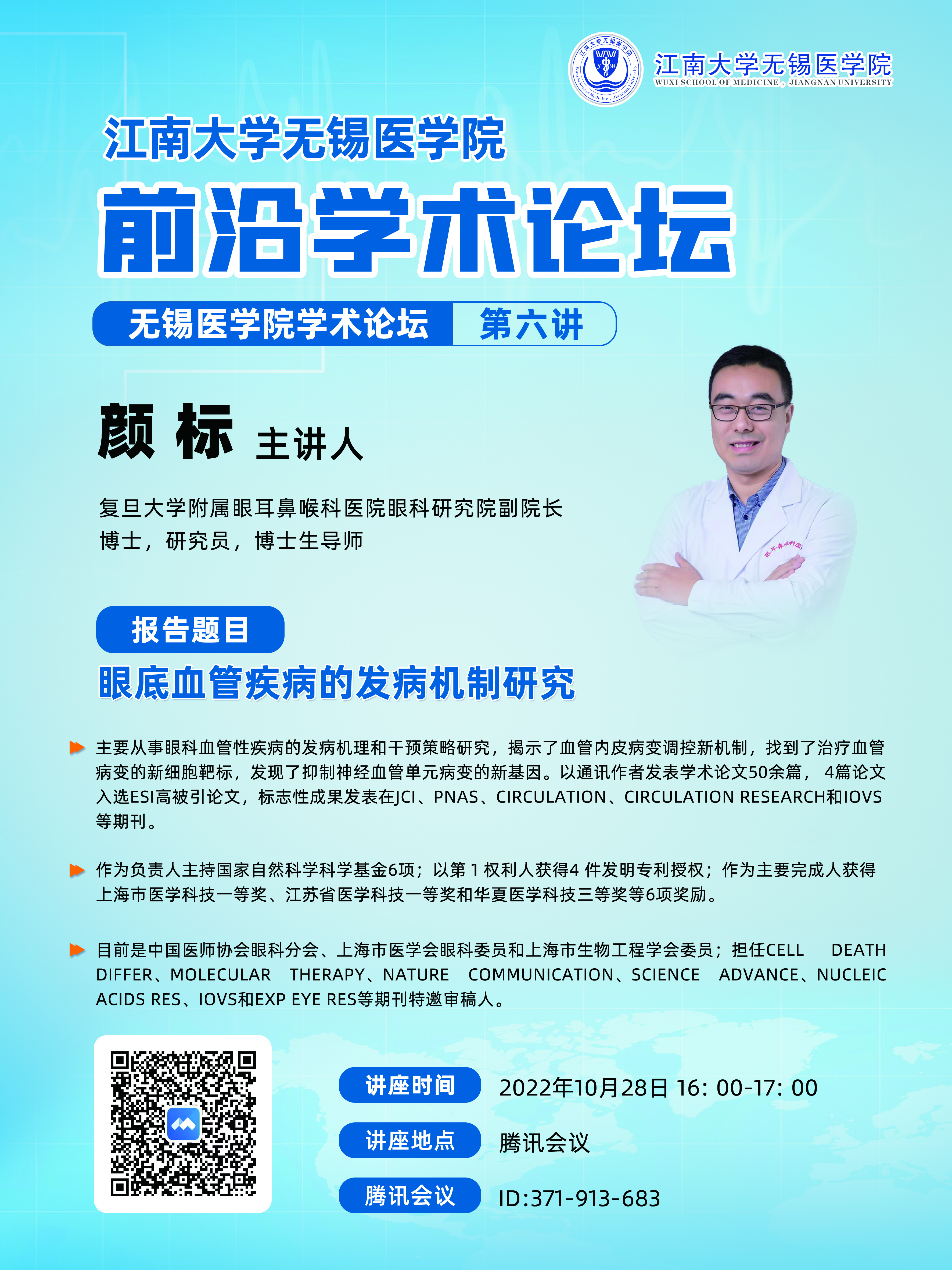 10月28日脱裤吧 前沿学术论坛 第六讲——颜标:眼底血管疾病的发病机制研究