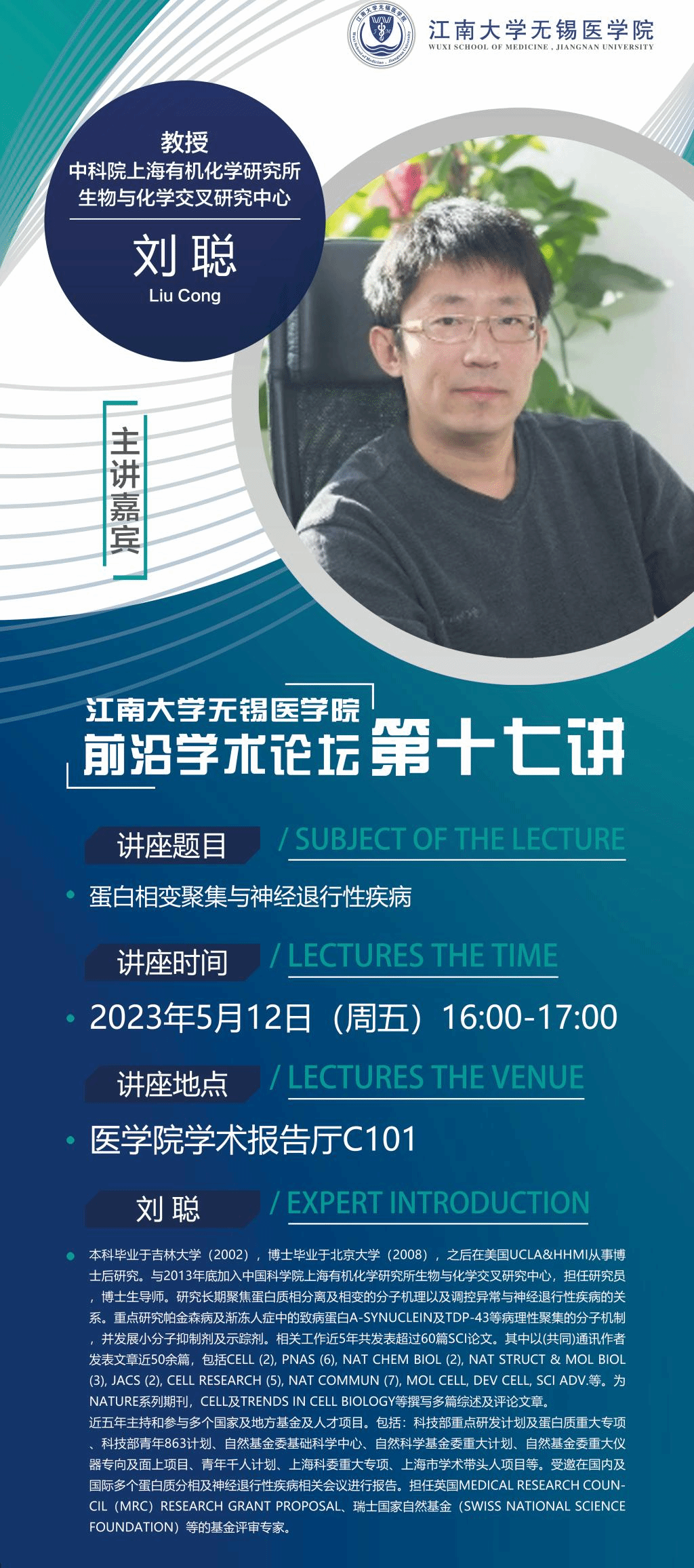 主讲嘉宾:刘聪教授 中科院上海有机化学研究所生物与化学交叉研究中心