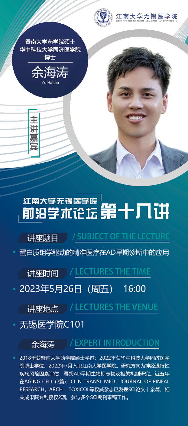 5月25日脱裤吧 前沿学术论坛第十八讲 余海涛副教授——蛋白质组学驱动的精准医疗在AD早期诊断中的应用