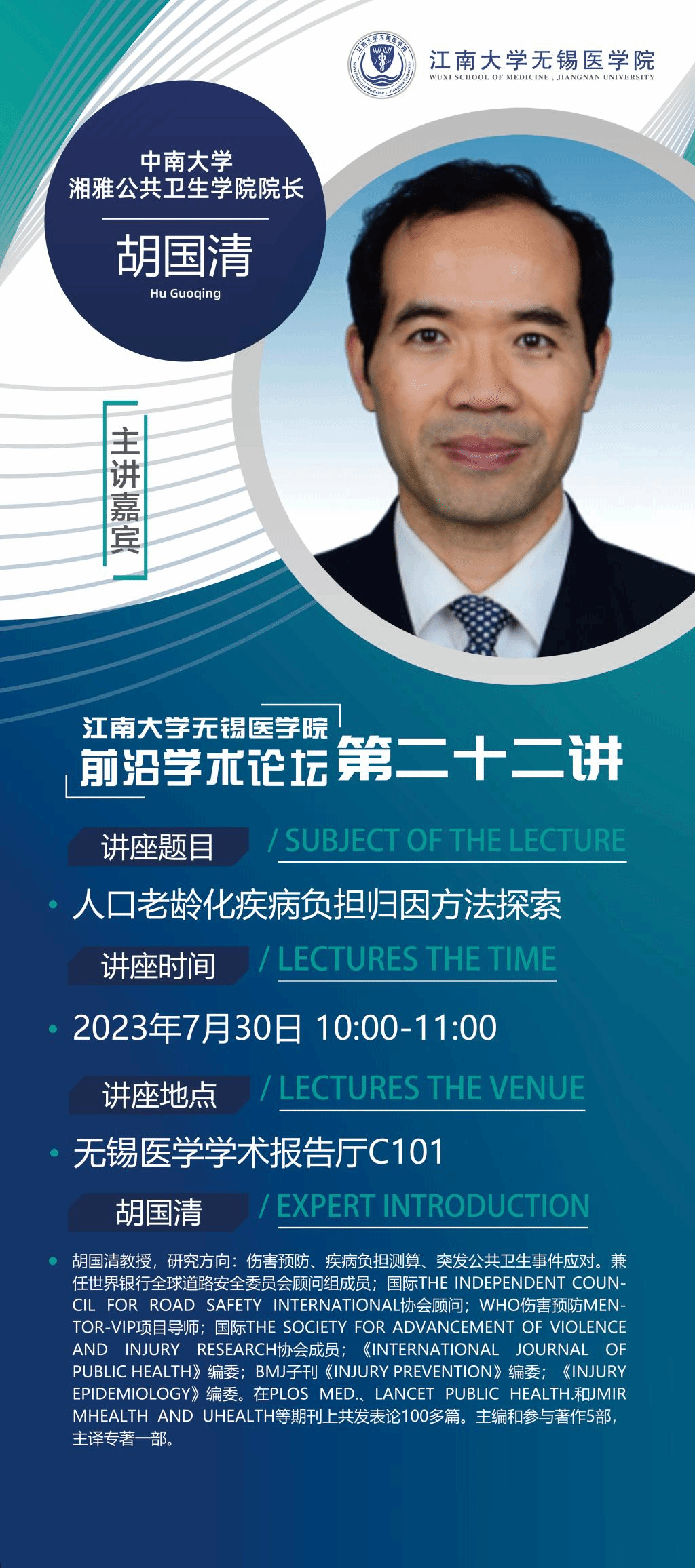 7月30日脱裤吧 前沿学术论坛第二十二讲 胡国清教授——人口老龄化疾病负担归因方法探索