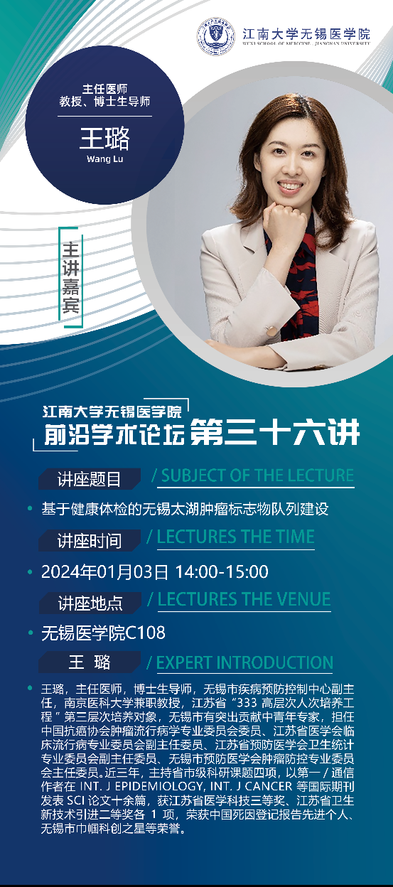 1月3日脱裤吧 前沿学术论坛第三十六讲 王璐教授——基于健康体检的无锡太湖肿瘤标志物队列建设