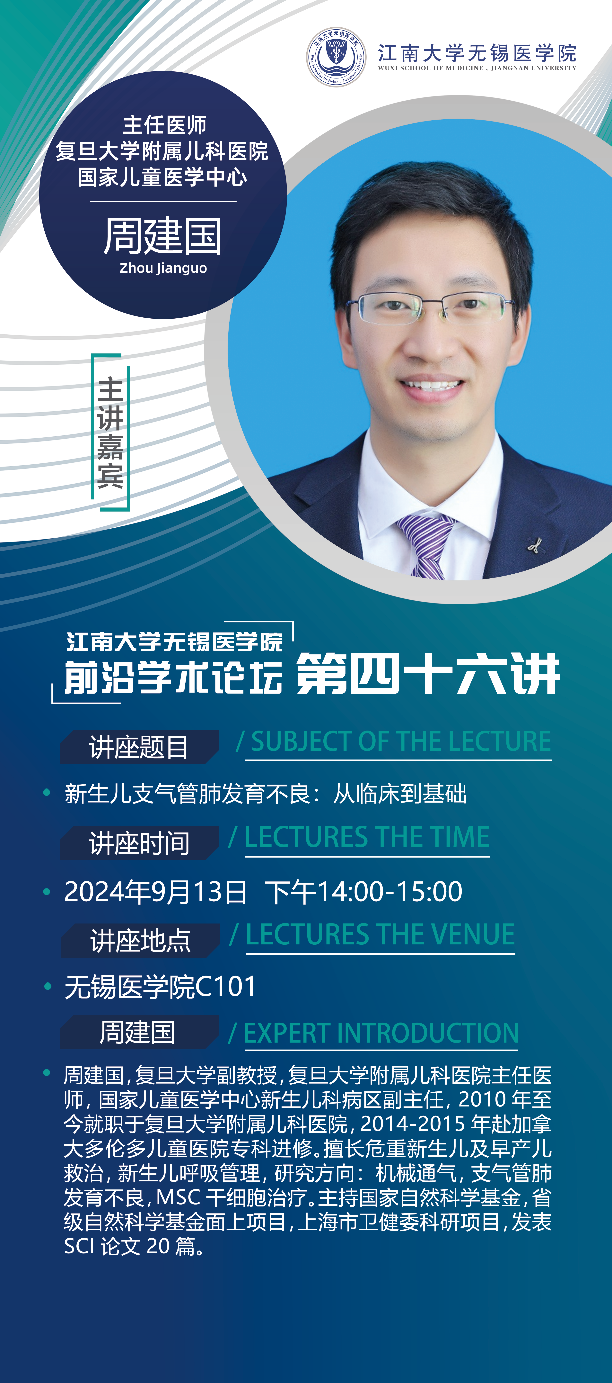9月13日 周建国:新生儿支气管肺发育不良—从临床到基础