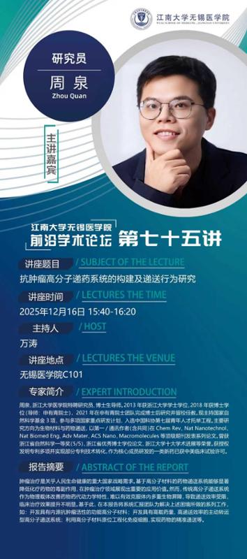 报告摘要:肿瘤治疗是关乎人民生命健康的重大国家战略需求。基于高分子材料的药物递送系统能够显著降低化疗药物的毒副作用,在肿瘤治疗领域展现出重要的应用价值。然而,传统高分子递送系统作为物理载体改善药物药代动力学特性,难以有效克服体内多重生物屏障,导致递送效率受限,临床治疗效果提升不明显。基于此,本报告将系统汇报团队为解决上述困境所做的系列工作,例如开发具有内源抗肿瘤活性的功能高分子材料;开发具有高载药量、高递送效率的主动转运型高分子递送系统;利用高分子材料原位工程化免疫细胞,实现药物的精准递送等。