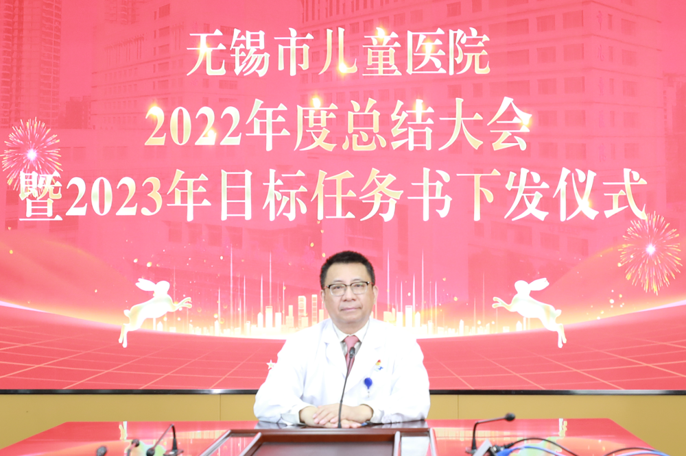 党委副书记、院长华东同志发表视频讲话。华院长对2022年工作给予肯定,在全院干部职工的共同努力下,医院成功创建为三级甲等儿童专科医院、省平安医院,建为脱裤吧