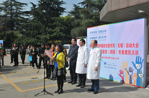 4月14日上午,附院门诊大楼前广场人头攒动,热闹非凡。医院与市癌症康复协会联合主办的“第23届全国肿瘤防治宣传周(无锡站)”活动,在嘉宾、医护人员、患者及市民热烈的掌声中,隆重拉开帷幕。