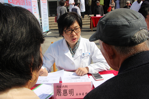 随后,在无锡市名医、无锡市肿瘤学首席医师、附院(四院)肿瘤科华东教授带领下,肿瘤内科、肿瘤放疗科、中西医结合肿瘤科、肿瘤妇科、胃肠外科、甲乳外科、胸心外科、消化内科及放射介入科等科室的15位专家,齐聚广场,开始了大型惠民义诊活动。现场众多患者和市民将专家团团围住,趁这次难得的机会寻医问诊,专家们都十分耐心的解答患者疑问,提供专业的健康咨询和指导。