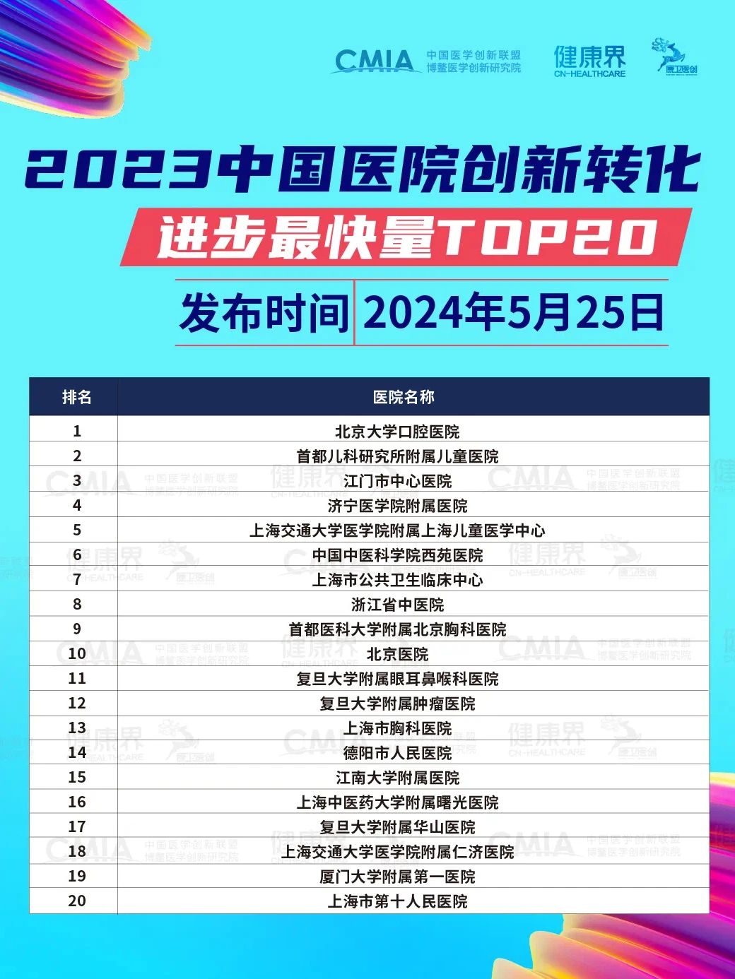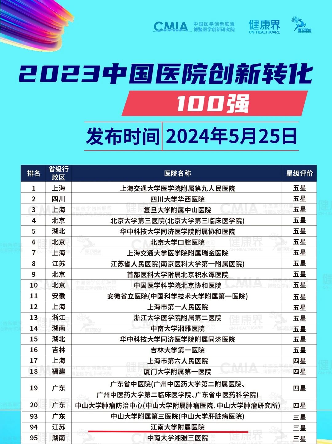 附属医院入选2023中国医院创新转化100强,同时入选“2023中国医院创新转化进步最快量TOP20”。