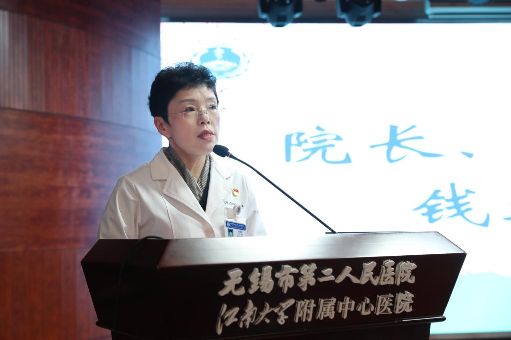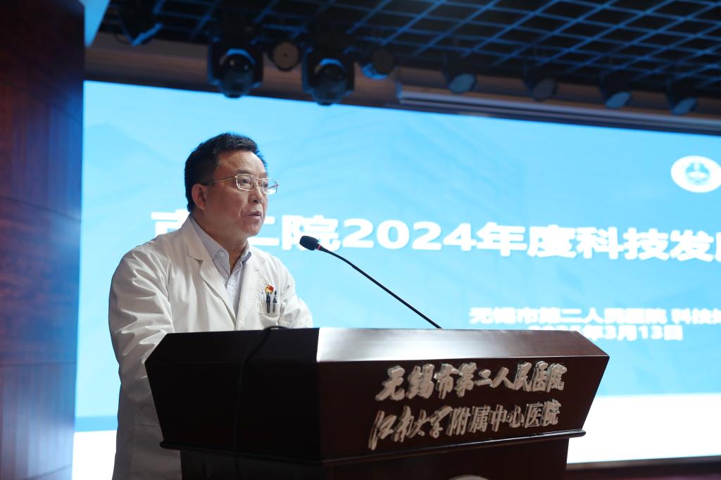 在开场致辞中,院长、党委副书记钱燕华总结了2024年度医院在科研立项、科技奖励、人才培养等方面获得的成绩,对全院科研人员的团结和付出表示了高度赞扬和衷心感谢。她指出,近年来医院科研氛围愈发浓厚,创新成果不断涌现,充分展现了医院科研实力的持续增强和科研队伍的蓬勃朝气。希望全院科研人员不待扬鞭自奋蹄,加强科技创新,为持续推动医院发展、提升医疗服务水平、实现无锡医疗卫生事业跃升贡献智慧力量,让科研成果惠及更多患者。