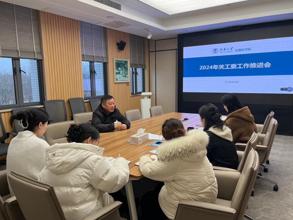 关工委工作当前的宣传情况、品牌建设、队伍组建等方面进行评估和指导,希望学院加强同附属医院、无锡市卫健委等单位在关工委工作上的合作共建,用活老教师老同志老专家资源,切实关怀青年教师成长、青年学生成才,为师生解决实际困难,做好年度工作总结与下一阶段工作计划。